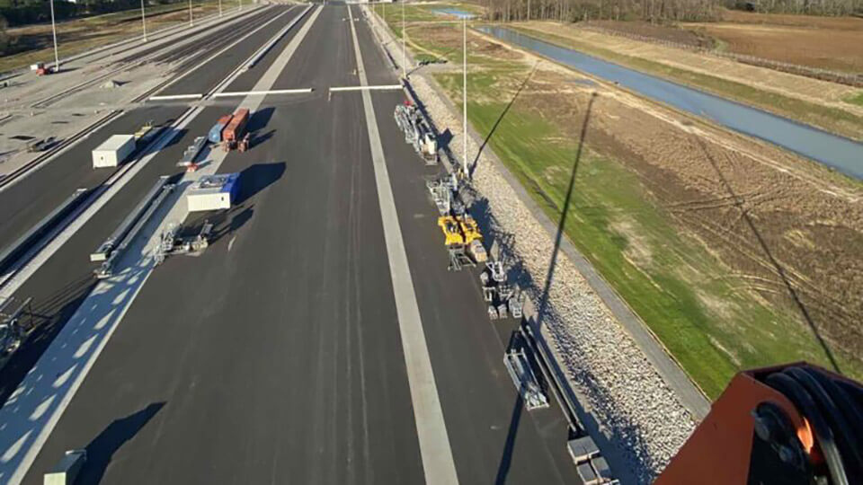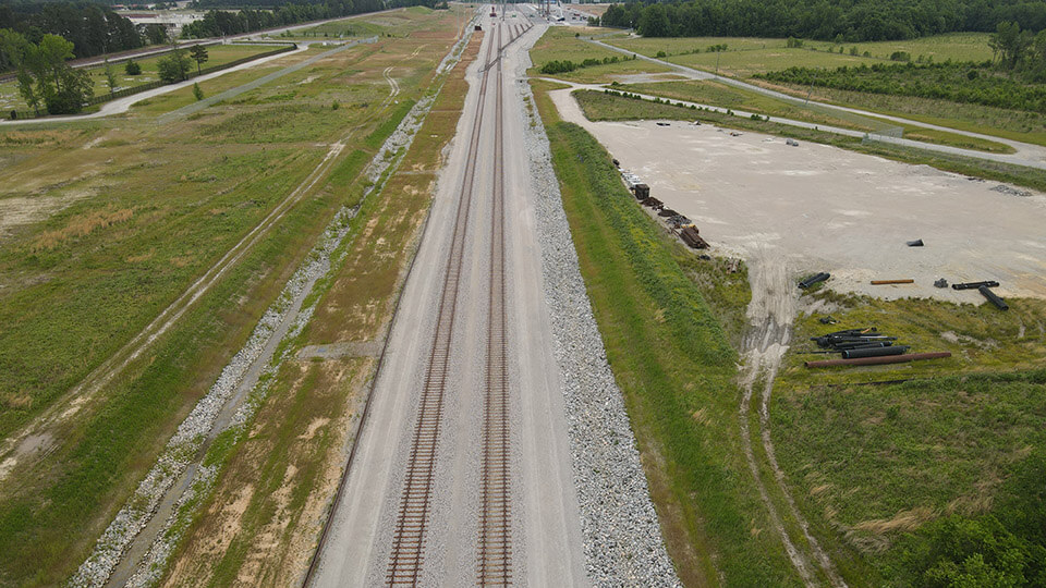 The overall project consisted of leading site development for this new intermodal facility on approximately 300 acres of existing farmland and forests. Two crane rails for 3 overhead cranes, a process area, container stacking area, new fueling area, one new administration building, one new maintenance building, and a new roadability building, along with all the supporting infrastructure for the facilities.
